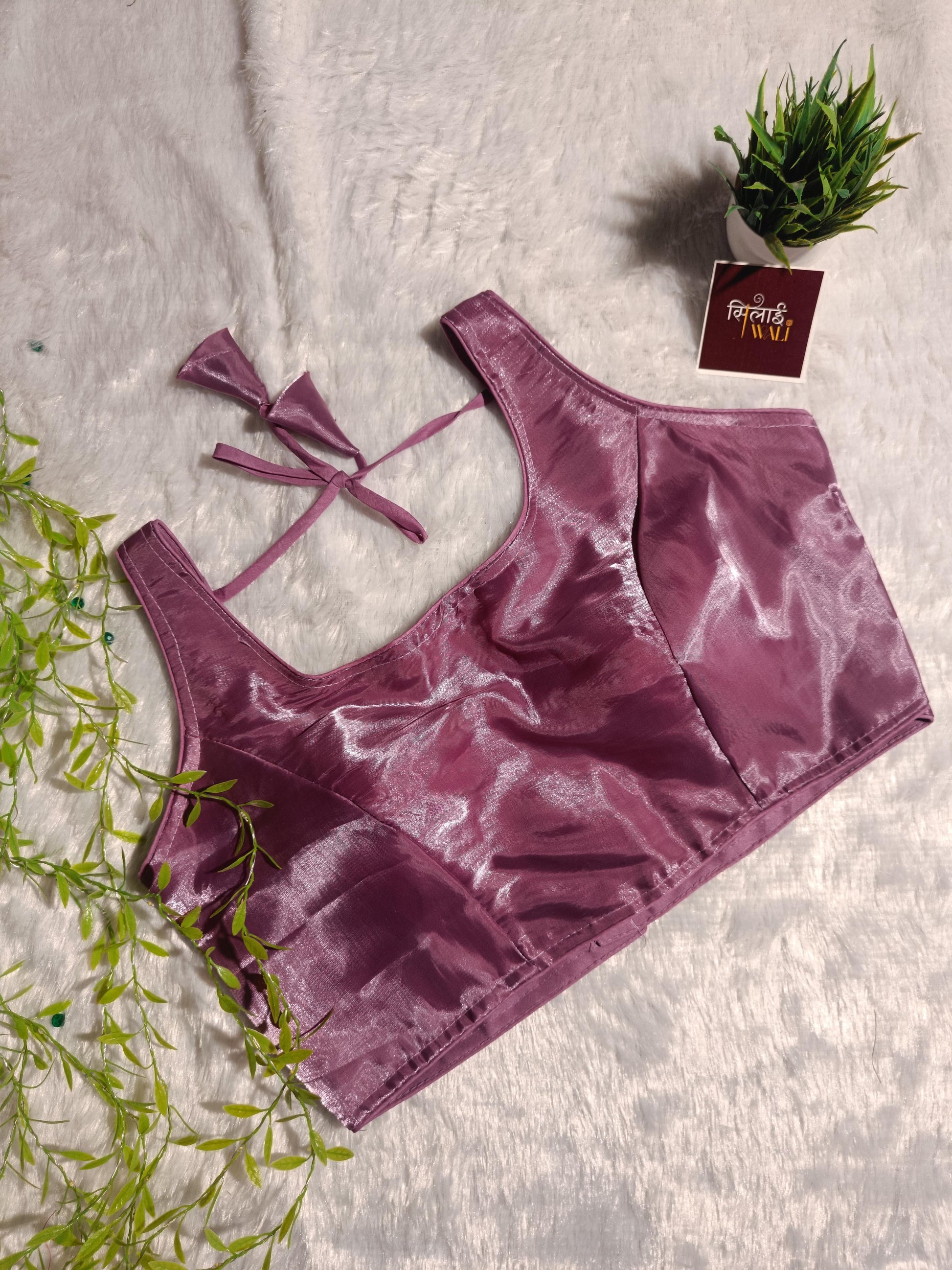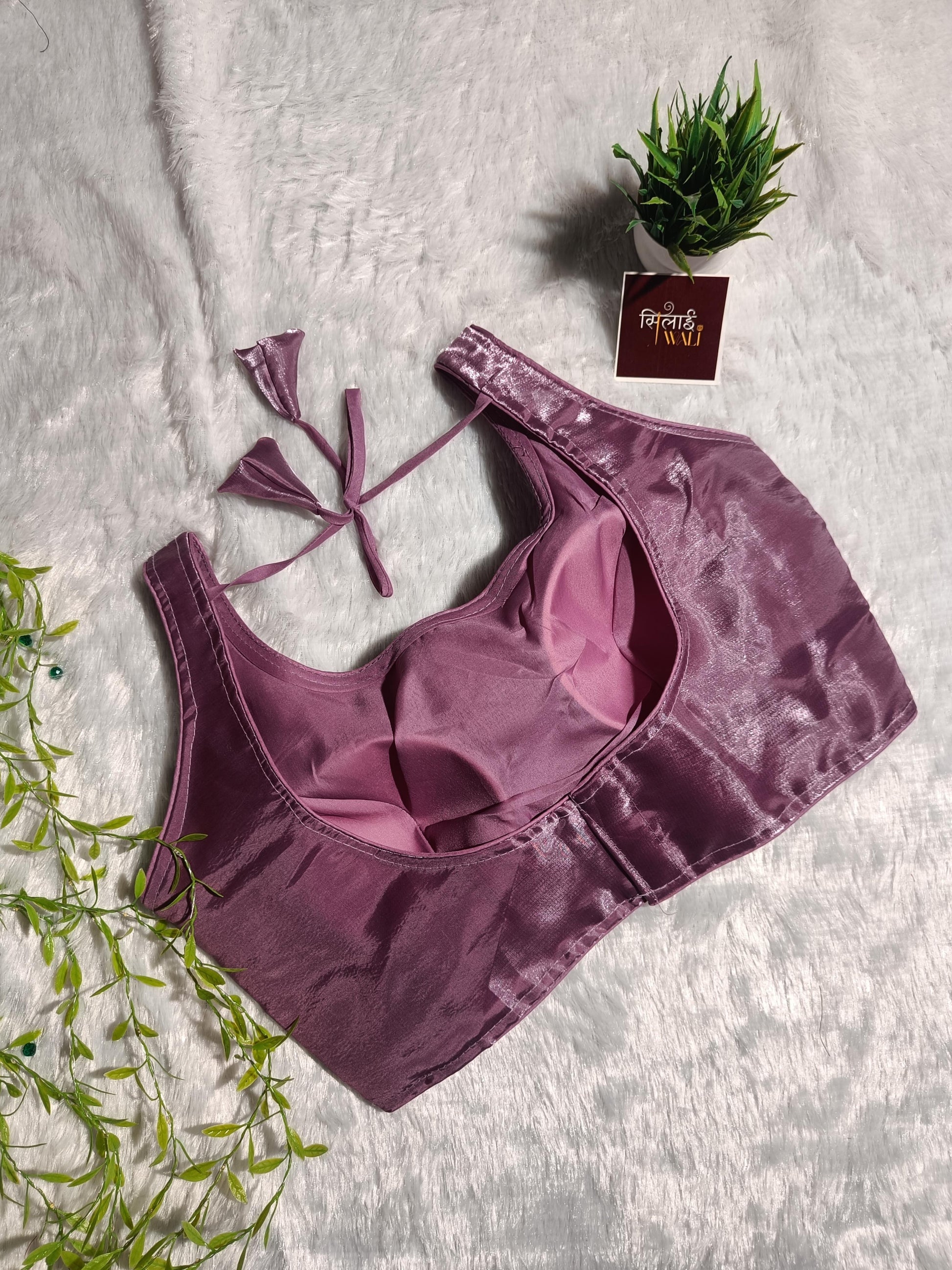 विवरण: एक ट्रेंडी मॉव ब्लाउज़ जो सौम्य रंग को चमकदार फिनिश के साथ खूबसूरती से पेश करता है। पेस्टल रंगों को पसंद करने वाली आधुनिक महिला के लिए बिल्कुल उपयुक्त।