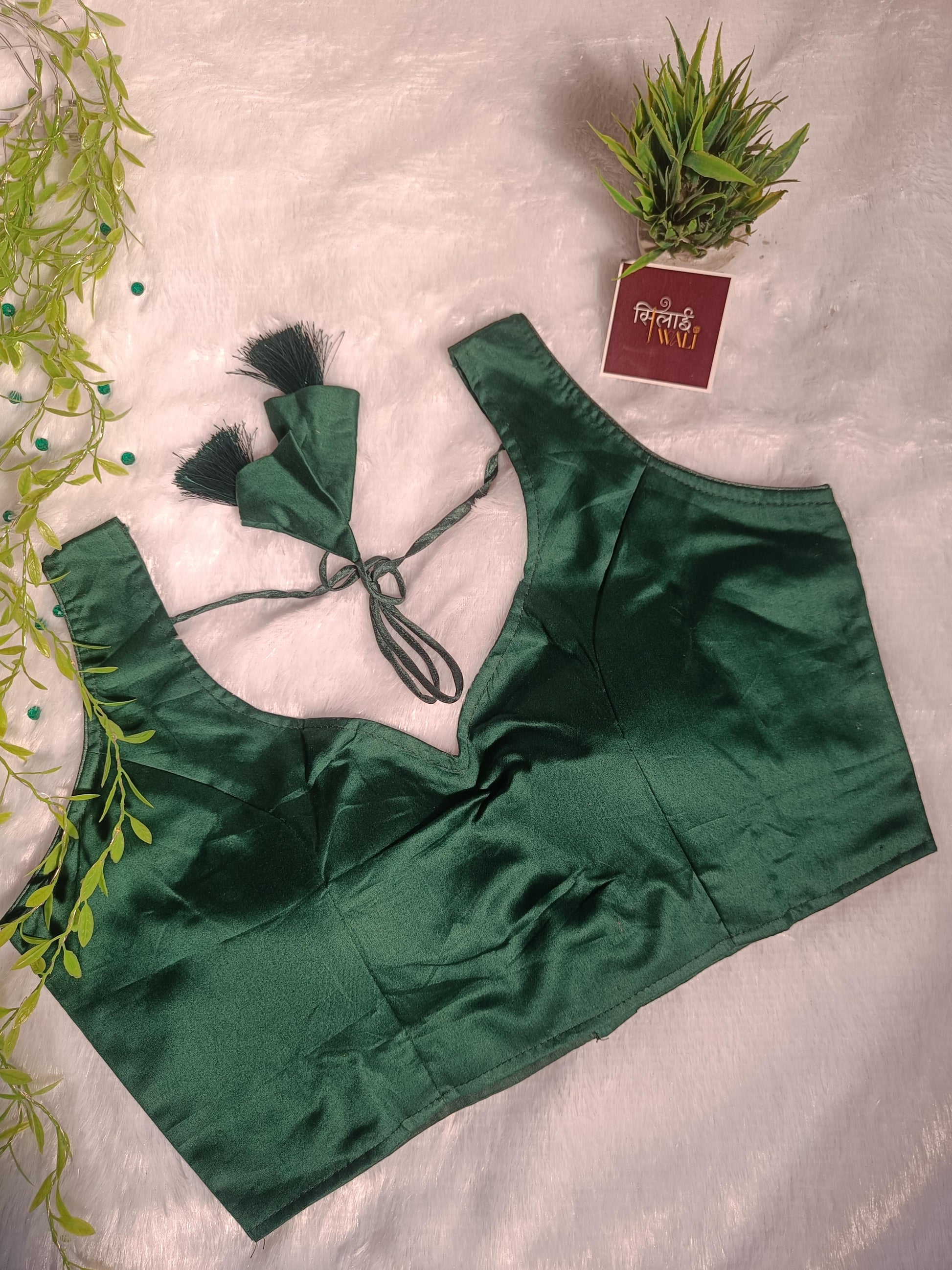 रोजाना फिजा आपके वॉर्डरोब में जंगल की समृद्धि लेकर आती है। सिल्क-ब्लेंड फैब्रिक से बनी यह ब्लाउज मुलायम चमक और बेहतरीन टिकाऊपन प्रदान करती है। इसका कॉन्टूर्ड स्वीटहार्ट नेकलाइन विशेष रूप से सभी बॉडी टाइप के लिए उपयुक्त फिटिंग देने के लिए सिला गया है। गहरा पन्ना हरा रंग एक सदाबहार शाही रंग है। अधिक स्टाइलिंग विकल्प प्रदान करने के लिए, ब्लाउज के अंदर अतिरिक्त स्लीव्स लगाई गई हैं । इसमें डबल टैसल बैक स्ट्रिंग्स हैं, जो इसे शादियों या मंदिर जाने के लिए एक विश्वसनीय और स्टाइलिश विकल्प बनाती हैं।