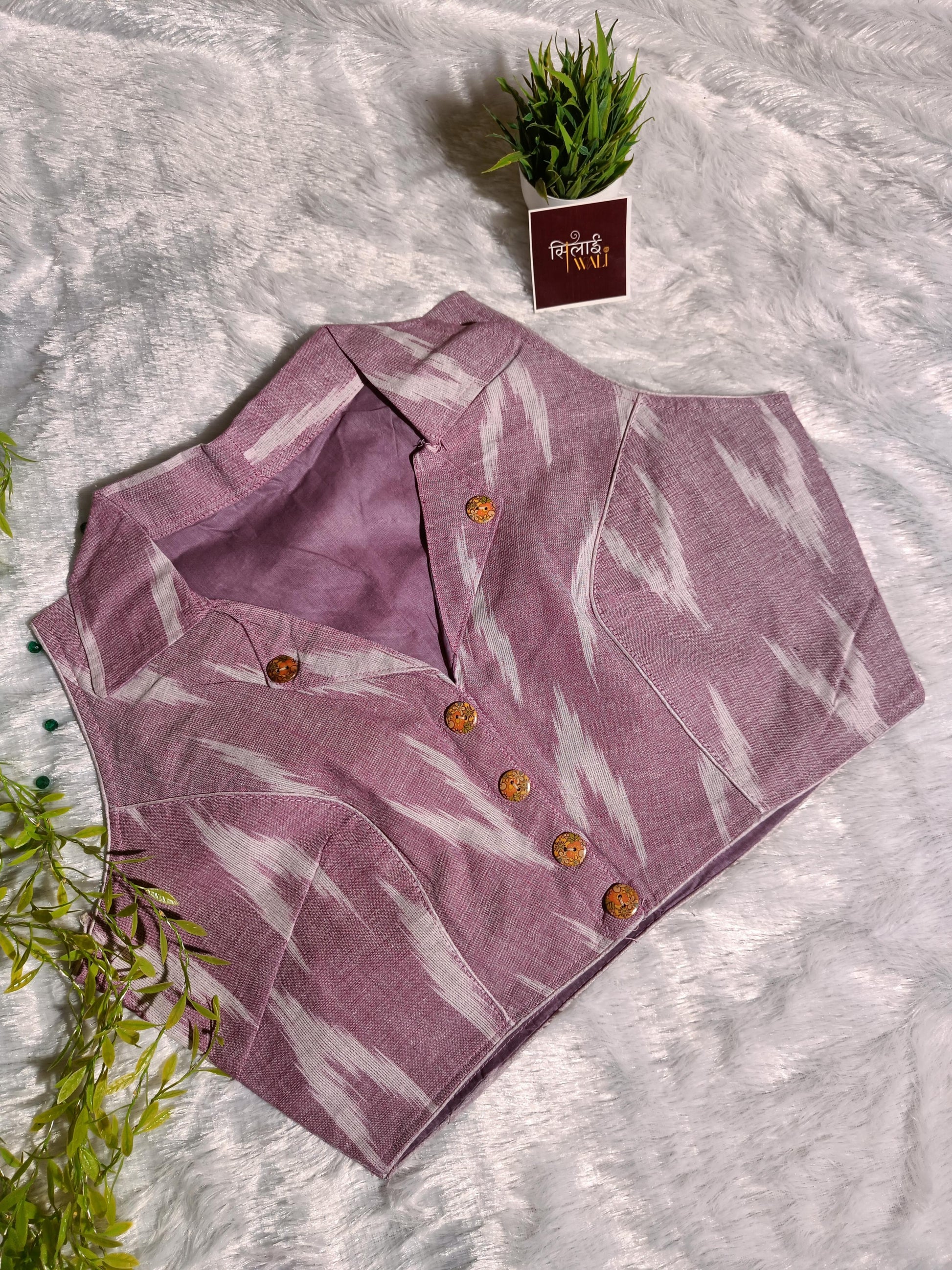 हमारे मॉव लैवेंडर इकत ब्लाउज के साथ अपने वर्कवेयर में आधुनिकता का स्पर्श जोड़ें। शांत मॉव बेस पर मिनिमलिस्ट सफेद इकत पैटर्न वाला यह कॉलरयुक्त कॉटन ब्लाउज एक साफ-सुथरा और सुव्यवस्थित लुक देता है। पैडेड न होने के कारण यह ब्लाउज हल्का महसूस होता है, जो लंबे ऑफिस घंटों के लिए आदर्श है।