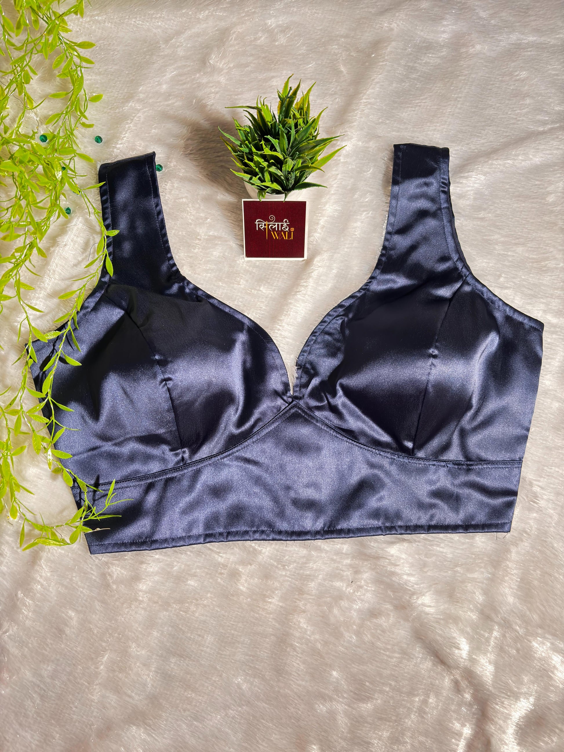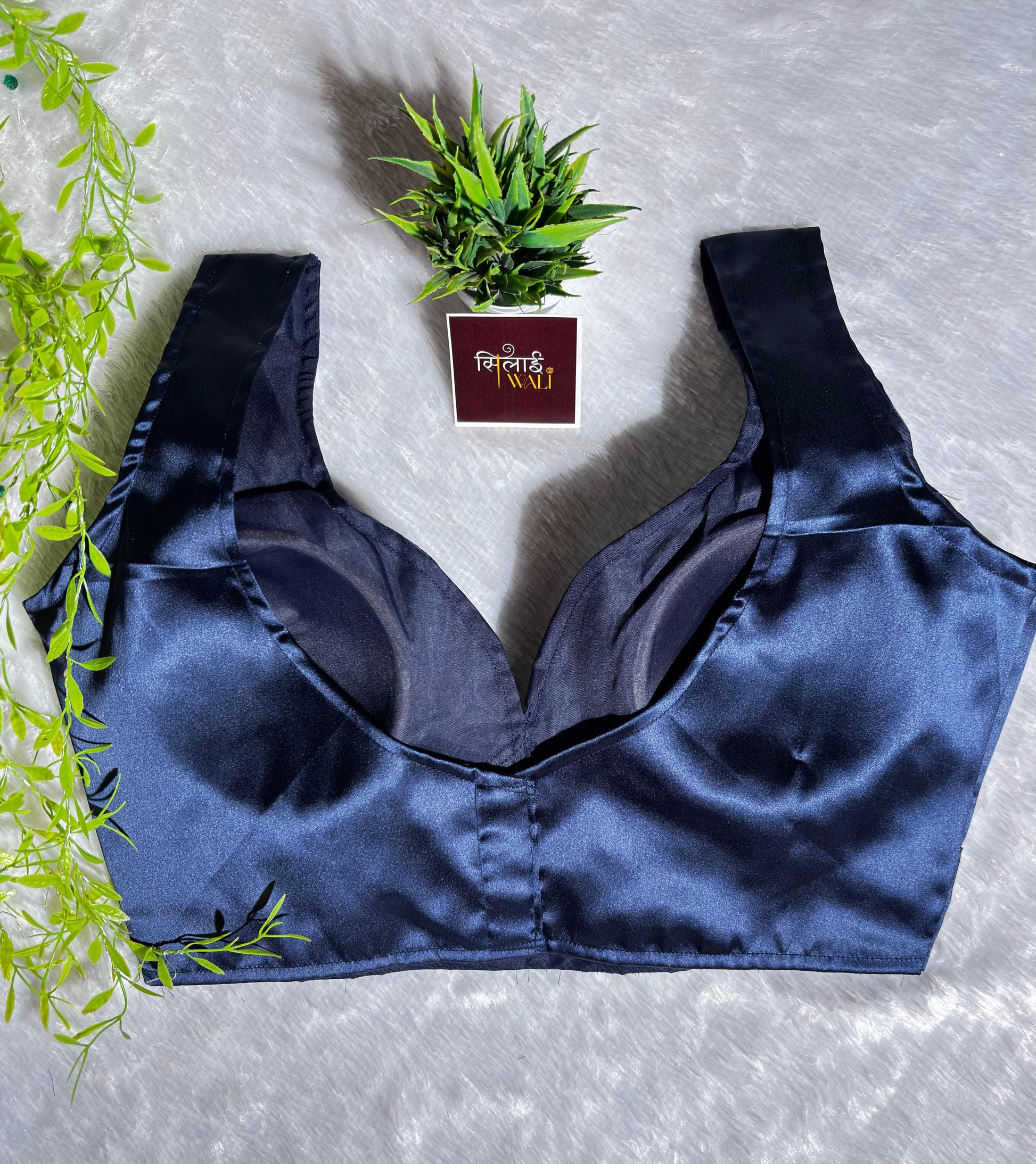 हमारे नेवी ब्लू रेडीमेड सैटिन ब्लाउज में शाही अंदाज़ का जलवा बिखेरें। इस ब्लाउज में चमकदार, शानदार फिनिश है जो रोशनी को खूबसूरती से बिखेरता है, जिससे यह शाम के उत्सवों और औपचारिक कार्यक्रमों के लिए एकदम सही है। स्लीक, स्लीवलेस डिज़ाइन और आधुनिक डीप वी-नेक इसे एक आकर्षक, समकालीन लुक देते हैं जो भारी पारंपरिक साड़ियों और हल्के आधुनिक परिधानों दोनों के साथ सहजता से मेल खाता है।