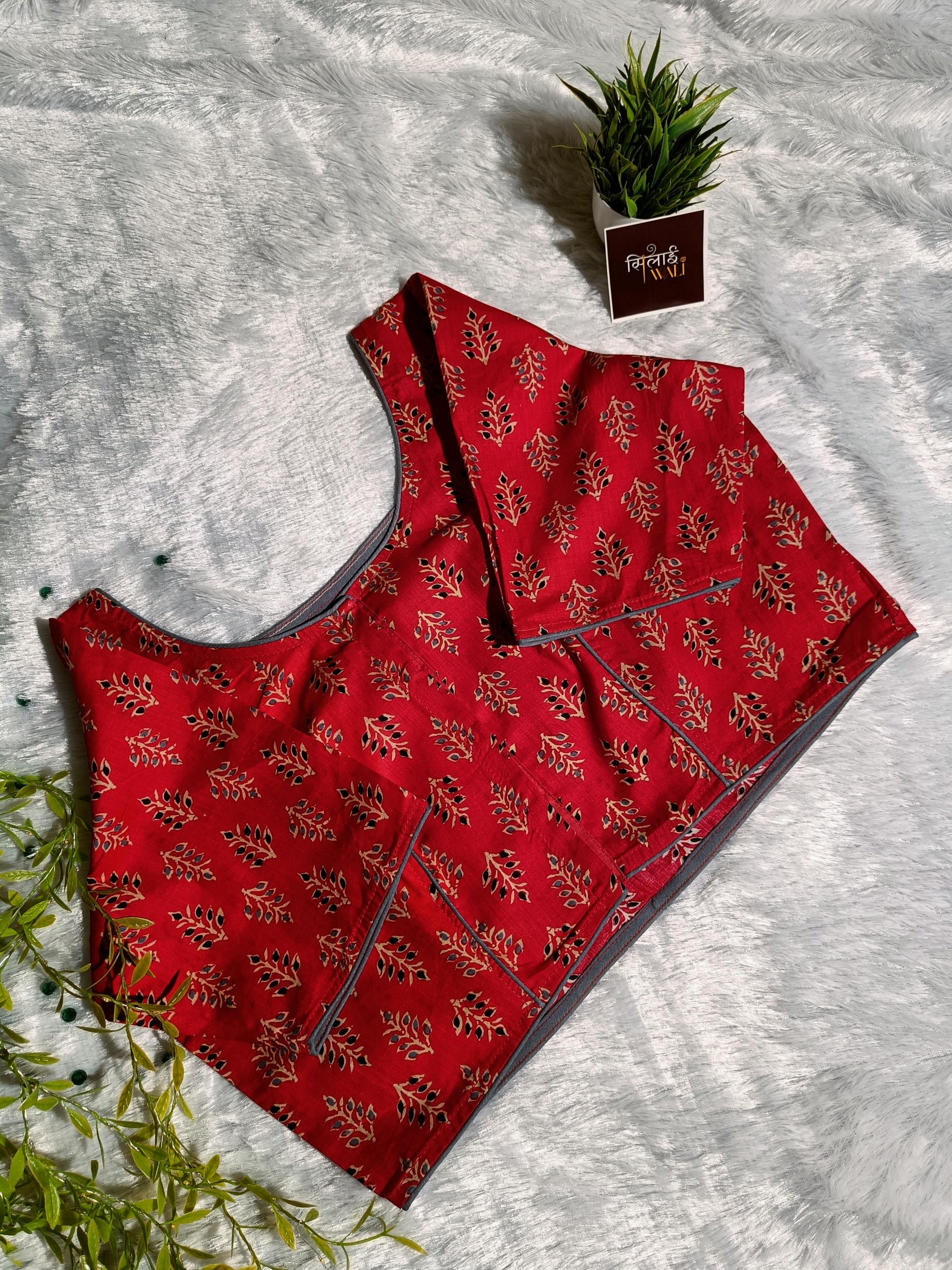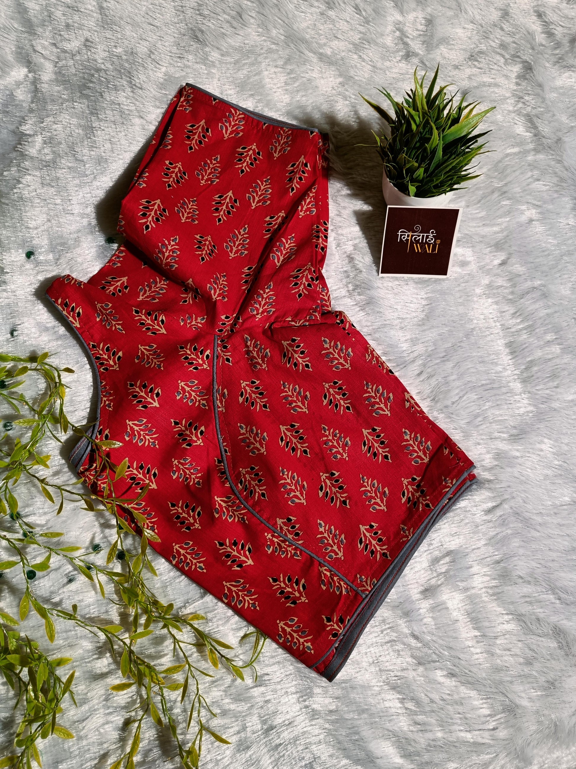 हमारे क्रिमसन रेड लीफ मोटिफ ब्लाउज के साथ अपने वर्कस्पेस में आत्मविश्वास का तड़का लगाएं। यह नॉन-पैडेड कॉटन ब्लाउज स्लीक ग्रे पाइपिंग कंट्रास्ट के साथ डिज़ाइन किया गया है जो इसके शार्पシルエット को उभारता है। सांस लेने योग्य फैब्रिक और शालीन 3/4 स्लीव्स इसे किसी भी मौसम में लंबे समय तक काम करने के लिए एक आदर्श विकल्प बनाती हैं।