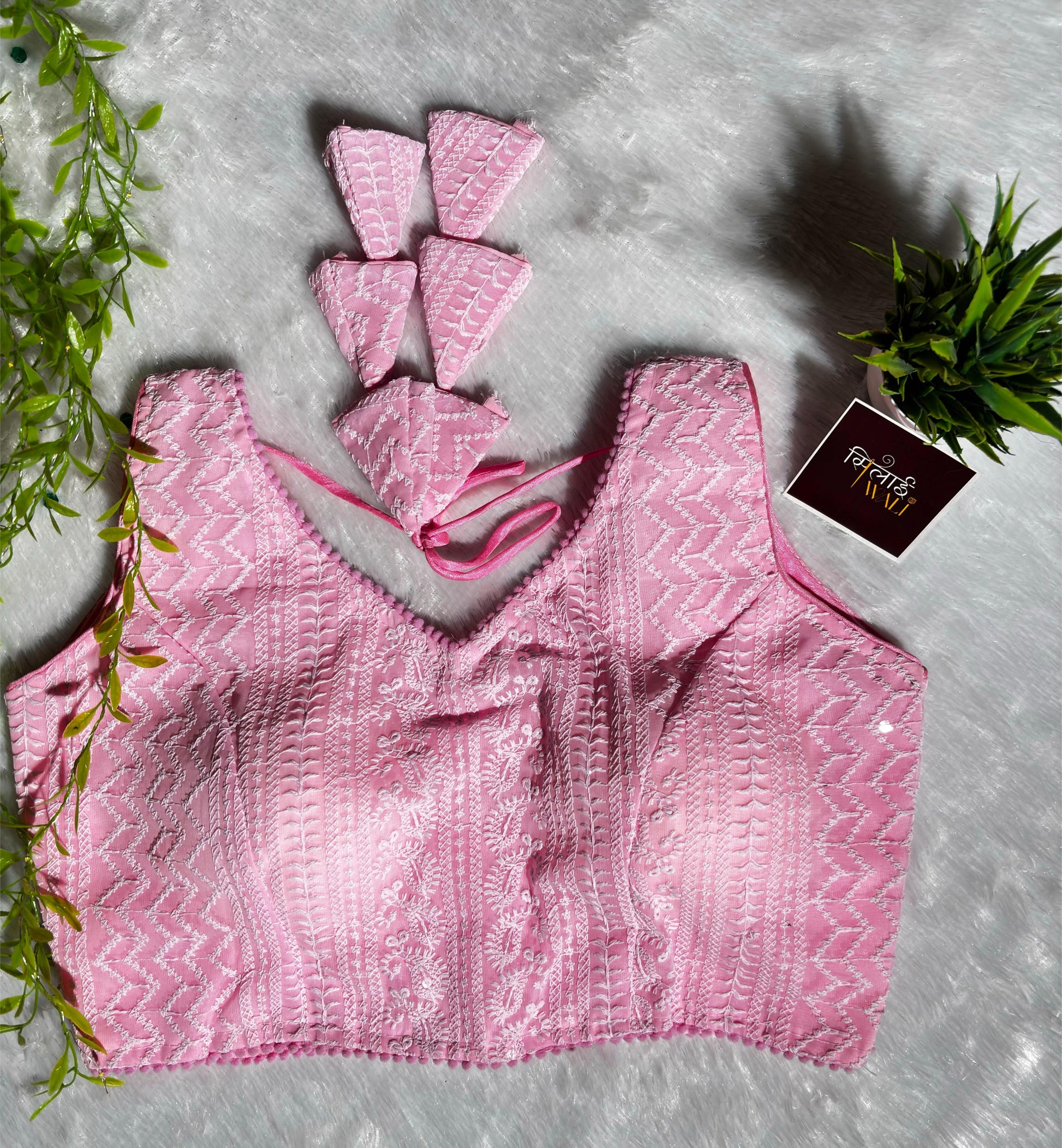 Soft, romantic, and undeniably feminine. This Pastel Pink blouse is designed for daytime festivities and summer weddings. The delicate floral Chikankari motifs combined with a soft pink hue create a dreamy aesthetic.